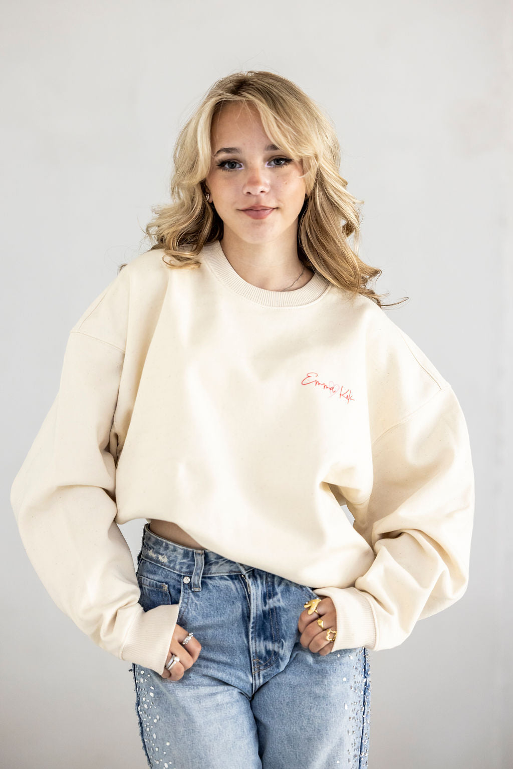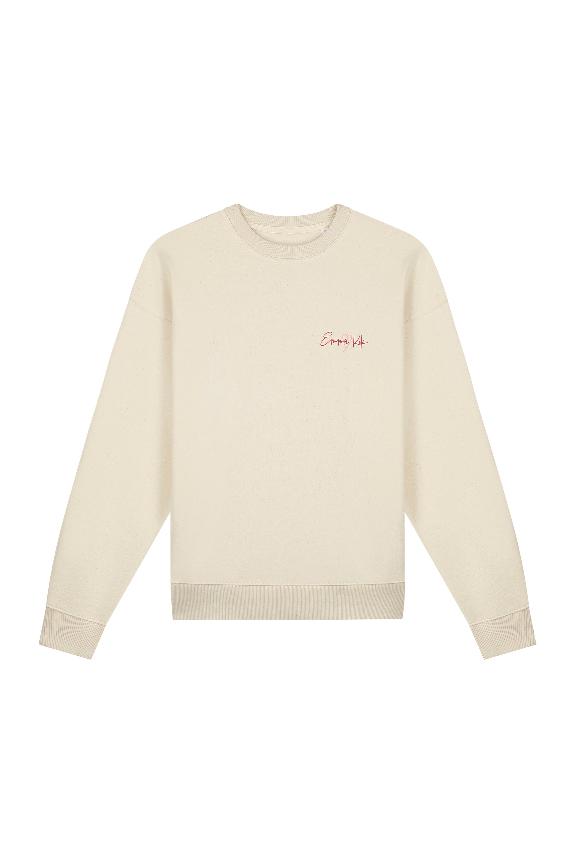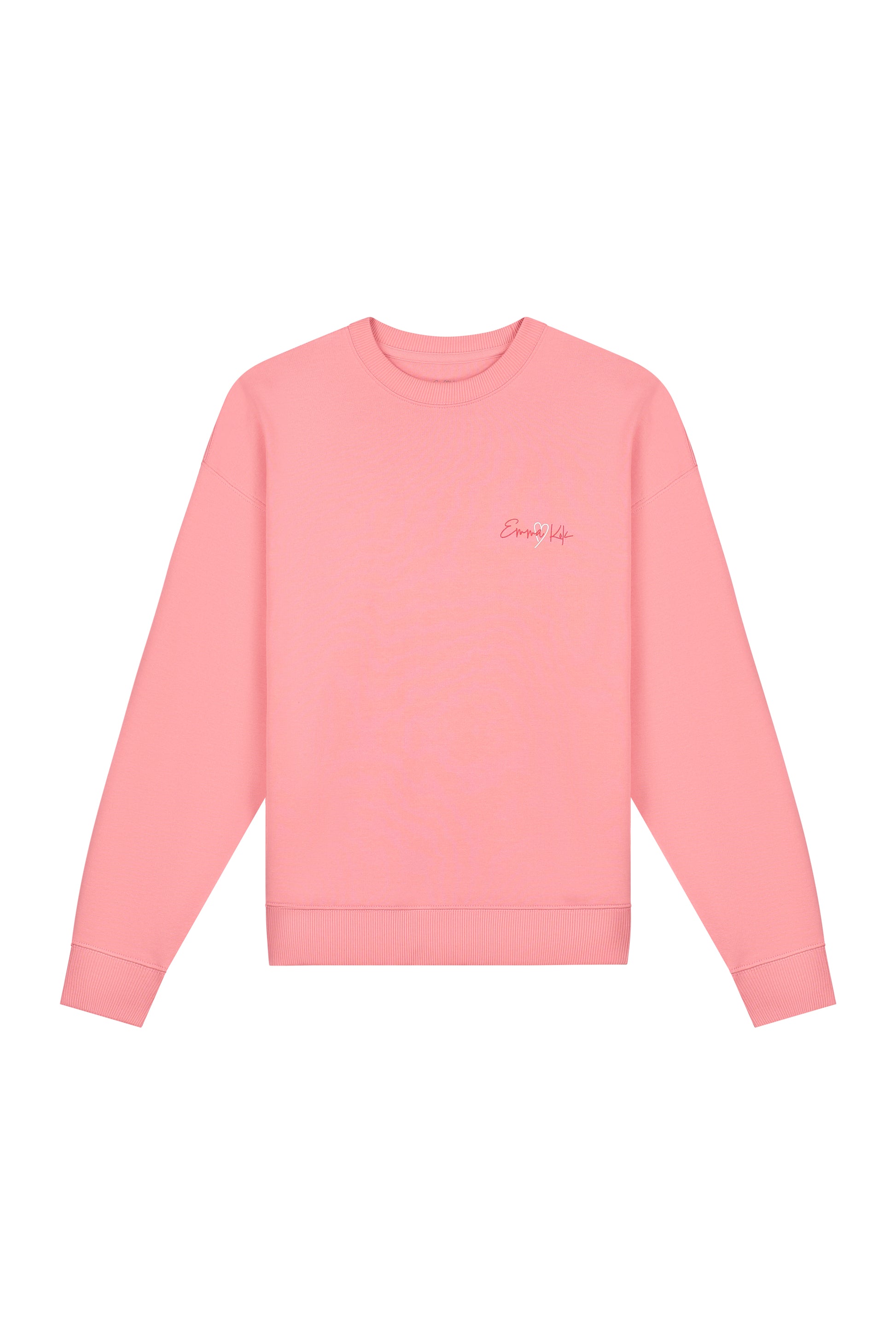 This premium oversized streetwear crew neck sweater is made from 100% organic cotton with a soft interior. On the front you will find Emma's logo and on the back you will see a huge hart! This sweater is now available in a first exclusive limited drop in three colors pink, natural raw and black. So order now!