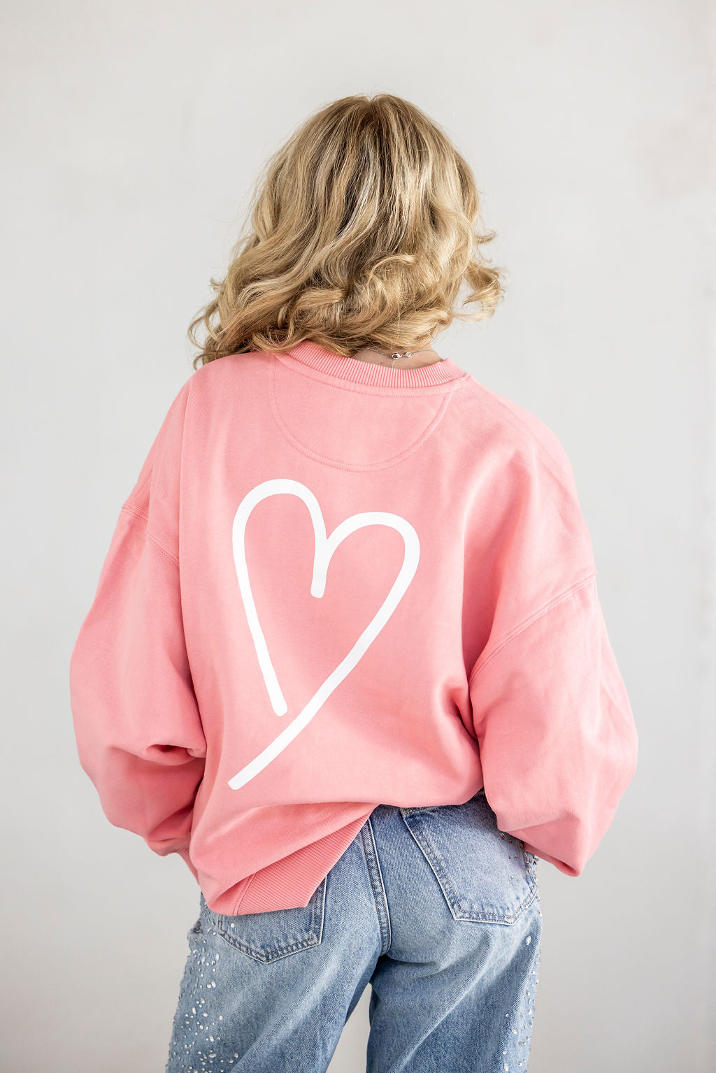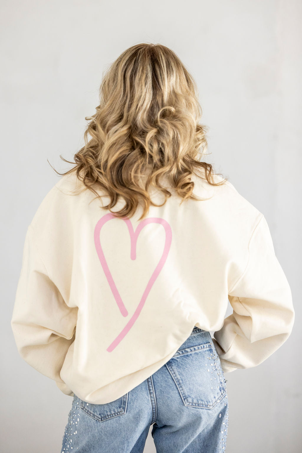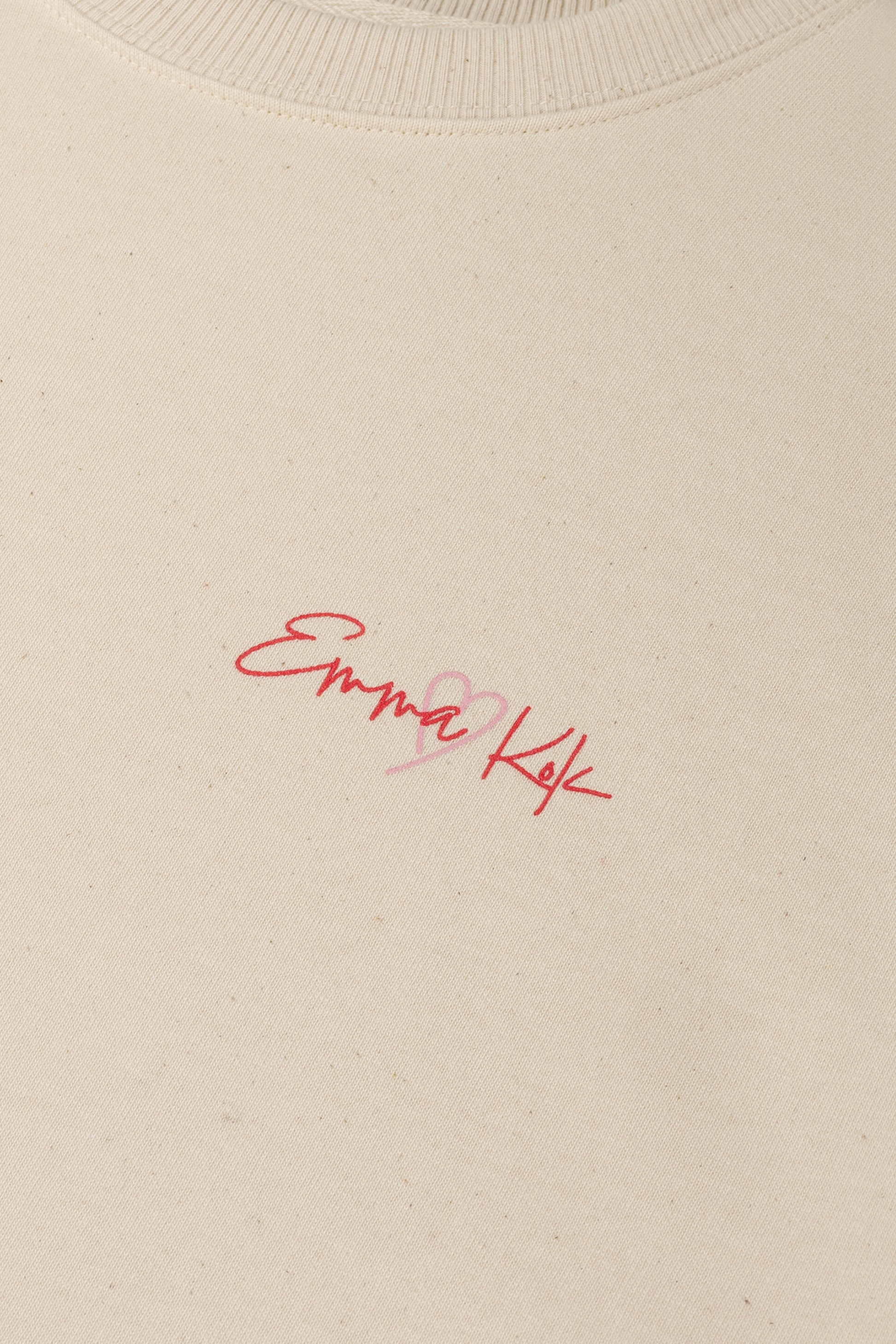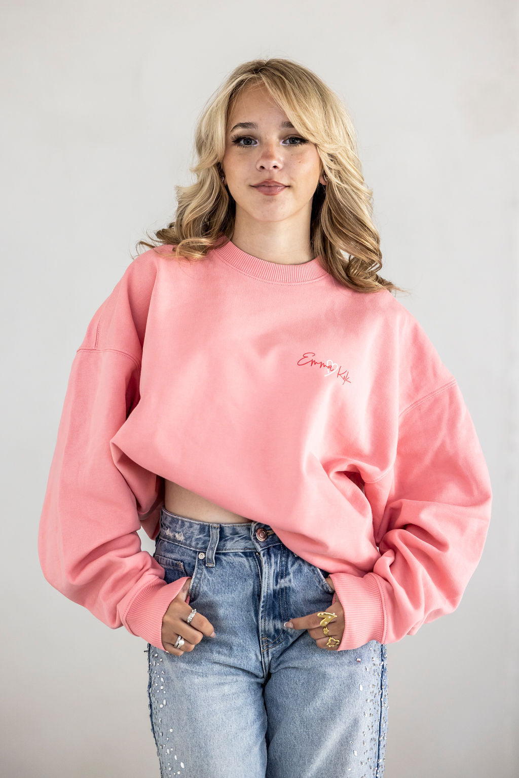 This premium oversized streetwear crew neck sweater is made from 100% organic cotton with a soft interior. On the front you will find Emma's logo and on the back you will see a huge hart! This sweater is now available in a first exclusive limited drop in three colors pink, natural raw and black. So order now!